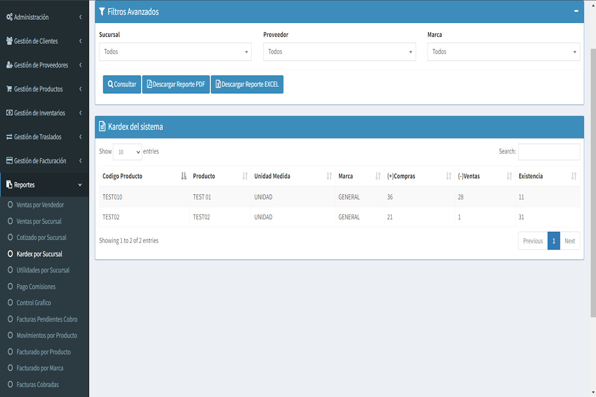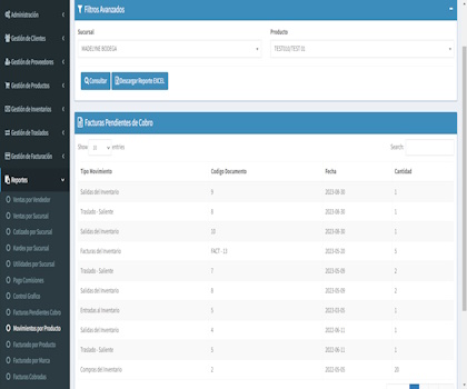 Visualiza el movimiento de inventario de manera detallada, tanto a nivel general como por sucursal, lo que te permite mantener un seguimiento preciso de las entradas y salidas de productos en cada ubicación.